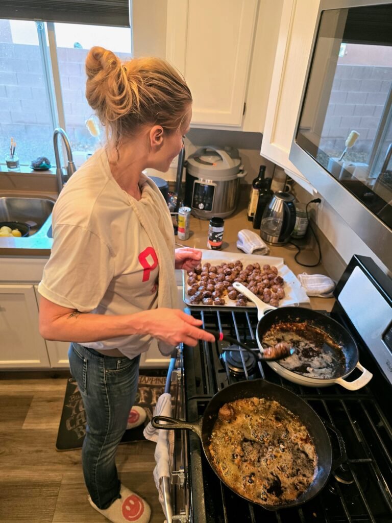 There also been cooking at home. I have to find the pics of us making Swedish meatballs, mashed potatoes, served with lingonberry jam from IKEA. Sooo good and we invited Angel, Ashley and Jennifer over and ours definitely beat IKEA’s balls! Linda enjoying the Vegas sun with Hunter, and me trying to convince Linda that people would pay to have my feet in their face LOL….