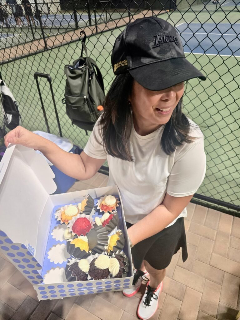 On Monday it was time for our Pickleball Women’s League again. Me & Stormi start strong, but weren’t quite able to keep it up until the end 🙁 But hey, we got until June to step up and we’re working on it! At least there were cup-cakes after! Of course I declined at first, but 5 seconds later I was stuffing myself with one hahhaaa… It was so good, but dragged myself away before I grabbed a 2nd one!