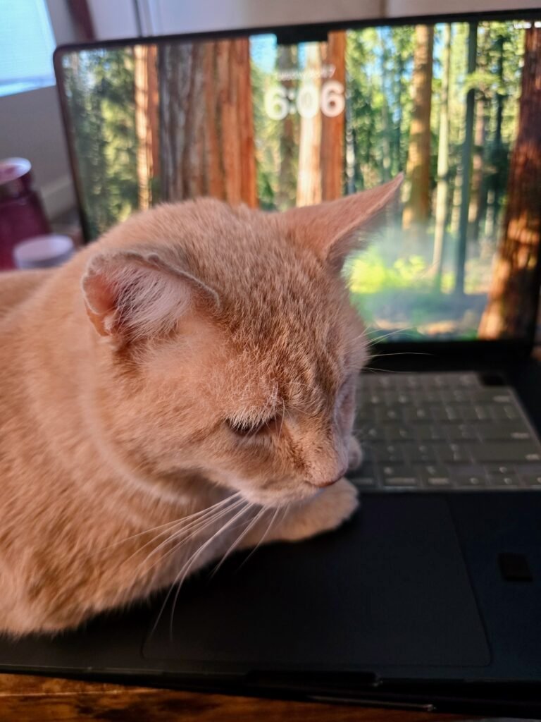 And Hunters week? Pretty much as always, eat, sleep, repeat. When he decides I had enough work, he walks and plants himself on my computer!